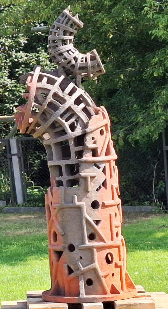 Tagad visu pēc kārtas. Šovasar jau trīspadsmito reizi Jelgavā četri mākslinieki Pasta salā desmit dienas lipināja sleju pēc slejas, lai līdz divu metru augstumam izveidotu šamota skulptūru. Šoreiz kopējo tēmu “Līdzsvars” īstenoja Edita Righaga no Zviedrijas, Jirži Lastovička no Čehijas un Guntis Svikulis, kādreizējais jelgavnieks, kurš tagad dzīvo Lielbritānijā, un viņus vadīja un pati darināja savu darbu mūsējā prasmīgā, lietpratīgā keramiķe Ilze Emse. Šī vasara šamota tēlu veidošanai nebija visai labvēlīga – biežais lietus mitrināja gaisu un neļāva atbrīvoties no liekā slapjuma šamota masā. Bija atkal un atkal jāmīca, padarot to padevīgu roku vēlmēm. Žuva arī lēni. Tomēr šamots padevās cilvēku gribai. Un tagad pie agrāko gadu veikuma pievienojami vēl četri darbi.