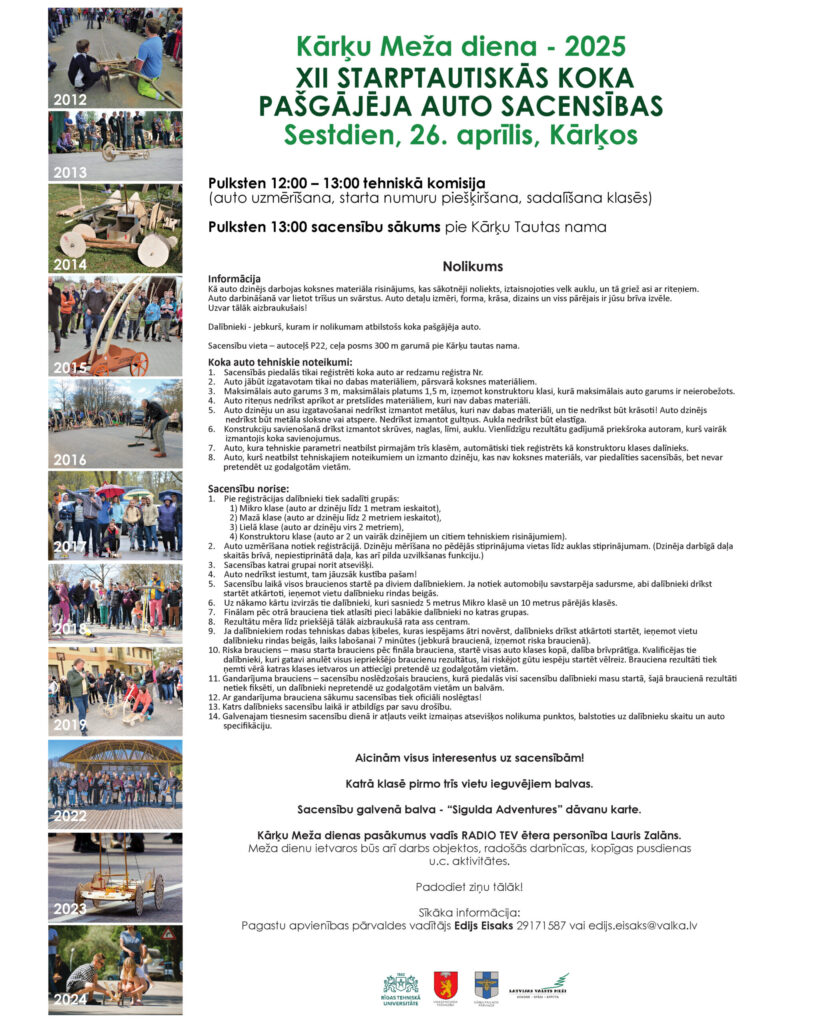 • Plkst. 12.00 – 13.00 sāksim koka auto uzmērīšanu un gatavošanās sacensībām.