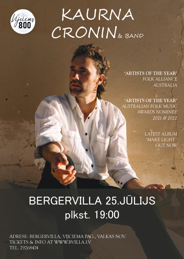 25. jūlijā savas Eiropas koncerttūres ietvaros arī Bergervillā koncertu sniegs mūziķis Kaurna Cronin ar grupu no Austrālijas!