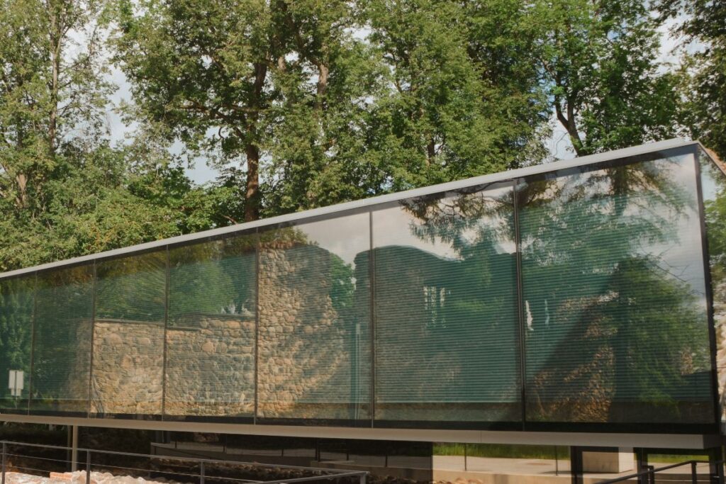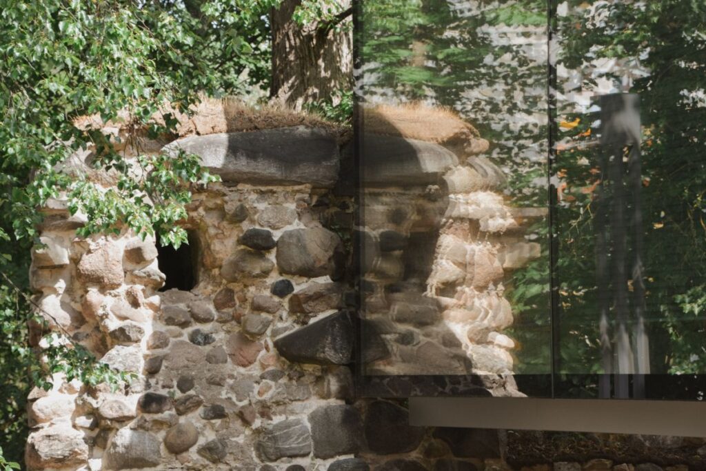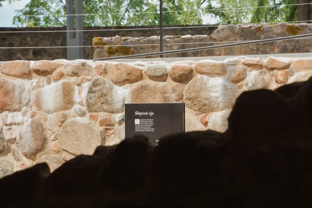 “Turpinot par dizaina mijiedarbību ar saturu, saspēles mēs varam redzēt visur. Piemēram, jaunajā stikla ēkā ekspozīcijas priekšmeti ir izvietoti stendos, kas stilistiski atgādina ķieģeli, turklāt ir caurskatāmi arī no sāna. Tāpat kā pati ēka ir no stikla, cauri tai un zem tās redzot vecos pils mūrus, tāpat arī, skatoties ekspozīcijas priekšmetus, cauri stendam redzēsim arī kādu pils daļu,” stāsta Alberts.