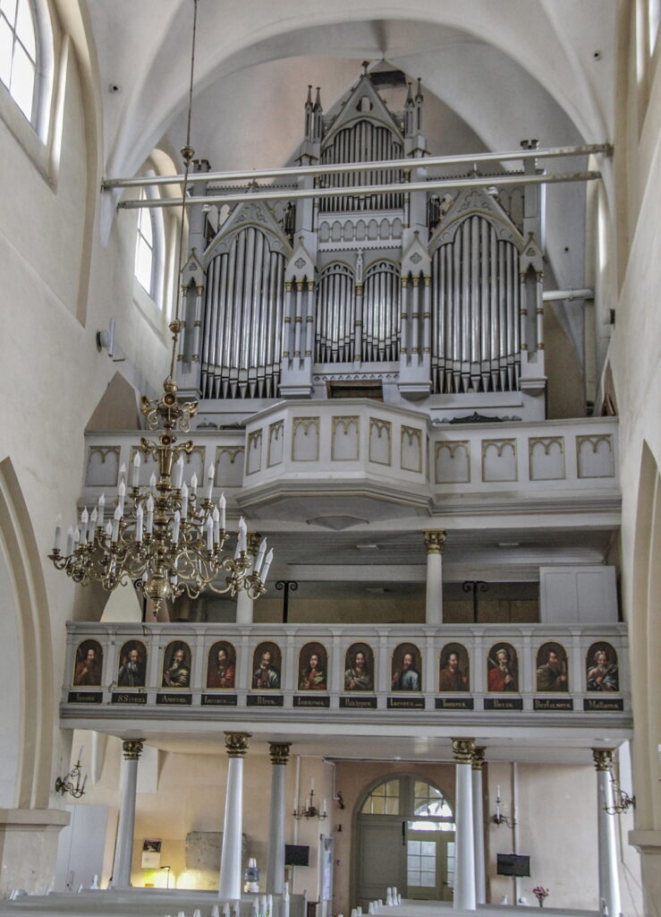 Ir arī divi pozitīvi – mazas, pārvietojamas ērģeles, un te pedālim nav sava patstāvīga reģistra: