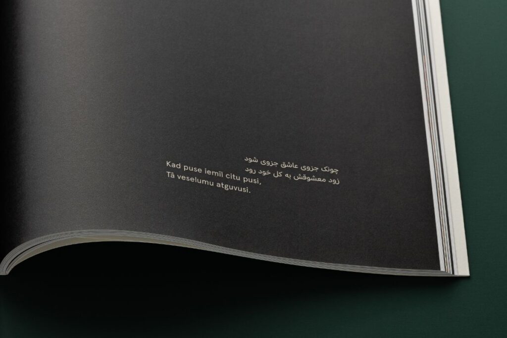 “Ideja par Rūmī citātu izlases izdošanu radās, skatoties uz Imanta Ziedoņa grāmatu plauktu vasaras mājā “Dzirnakmeņi” Murjāņos. Meklēju tajā kaut ko neparastu un ieraudzīju necila izskata paplānu grāmatiņu pelēkbrūnā krāsā. Uzreiz pamanīju, ka teksts uz vāka ir kirilicā, sāku to lasīt un aizrāvos no rindas uz rindu, tverot brīnumus. Tik tēlaini skaista dzeja, taču krievu valodā tomēr nav viegli lasīt šo meistardarbu. Tikai pēc tam sapratu, kādu dārgumu turu rokās un ka tas nav daudz tulkots un izdots latviešu valodā. Šobrīd nepieciešams lasīt pasaulīgus tekstus latviešu valodā, lai bagātinātu savu kultūras lauku,” par grāmatas tapšanu stāsta fonda “Viegli” padomes priekšsēdētāja Žanete Grende. Rūmī: “Par dzelzi lēnprātības asmens asāks / Simt karapulku posta par to mazāk.”