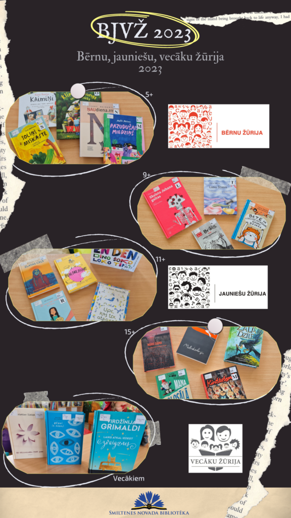 Lasīšanas veicināšanas programmas “Bērnu, jauniešu un vecāku žūrija 2023” grāmatu kolekcijas iegādi un norišu īstenošanu atbalsta LR Kultūras ministrija. Smiltenes novadā kolekciju komplektē Smiltenes bibliotēkas bērnu apkalpošanas nodaļa, Apes, Bilskas, Blomes, Drustu, Gaujienas, Palsmanes, Raunas, Trapenes un Variņu bibliotēka. Šajās bibliotēkās arī aicinām pieteikt savu dalību programmā. Ne tikai jaunieši un bērni tiek aicināti piedalīties “Bērnu, jauniešu un vecāku žūrijā 2023”, bet arī vecāki! Vecāku uzdevums: rādīt priekšzīmi, ceļot grāmatā, apspriest izlasīto ar bērniem. Nāc kopā ar bērniem uz bibliotēku un izvēlies sev piemērotas grāmatas! Starp citu, bibliotekāres brīdina – dažas šīs kolekcijas grāmatas bibliotēkās jau esot izķertas!
