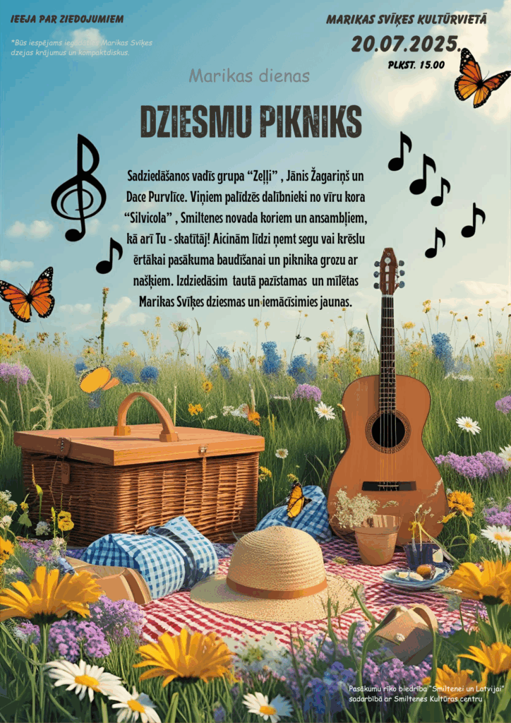 Katru gadu Marikas dienai atrodam savu tēmu, ko iedvesmo kultūrvieta un Marikas dzeja. Šoreiz mūs iedvesmoja Smiltenes svētku tematika un Dziesmu un deju svētki un nolēmām savīt visas šīs pērles un tradīcijas vienā notikumā – Marikas dienas dziesmu piknikā.