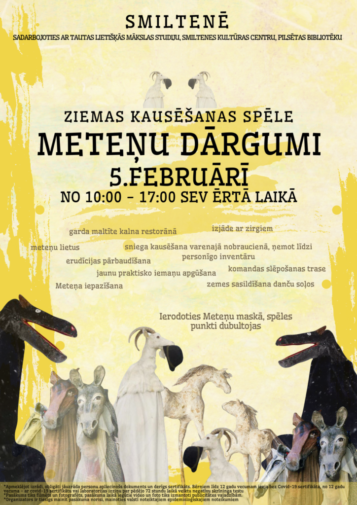 Meteņi latviešu tradicionālajā kultūrā ir pavasara gaidīšanas svētki, kad cilvēki modina dabu, pēdējo reizi dodas masku gājienos, zīlē nākotni un ļaujas dažādām rituālajām ēverģēlībām. Smiltenē Meteņi šogad tiks svinēti 5. februārī ar īpašu un neparastu ziemas kausēšanas spēli “Meteņu dārgumi”. Pasākumu iespējams apmeklēt sev ērtā laikā, no pulksten 10.00 līdz 17.00.
