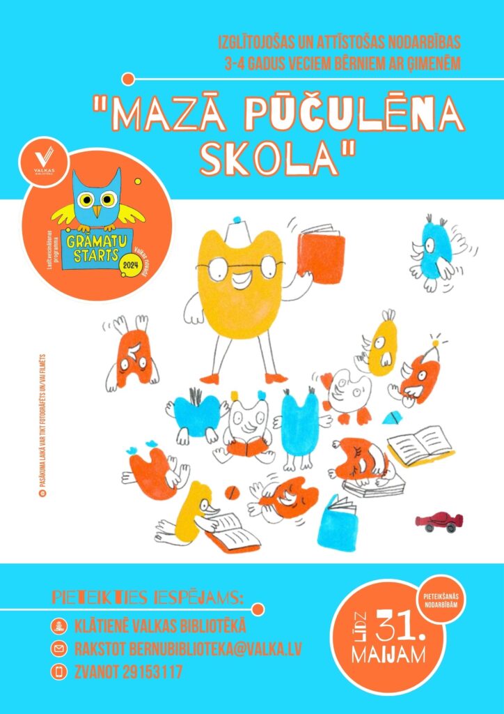 Līdz maija beigām Valkas bibliotēka aicina ģimenes, kurās aug 3-4 gadus veci bērni, pieteikties “Mazā Pūčulēna skolas” nodarbībām savai dzīves vietai tuvākajā bibliotēkā.