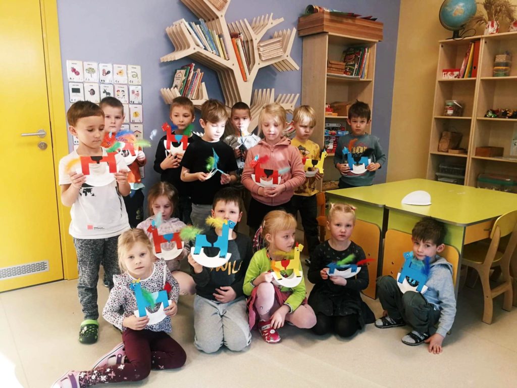 Nodarbības ietvaros bērni uzmanīgi klausījās Jura Zvirgzdiņa grāmatas “Kapteiņa zirdziņš” lasījumu, pēc kura sekoja tematisks uzdevums – katram bērnam izveidot pašam savu šūpuļzirdziņu.