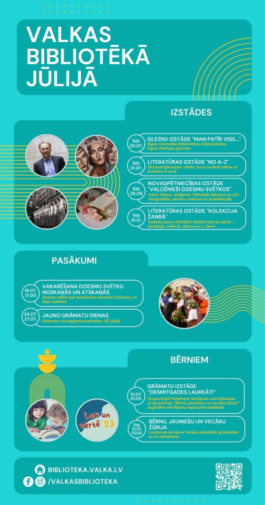 Informācija par pasākumiem un aktualitātēm Valkas bibliotēkā JŪLIJĀ.