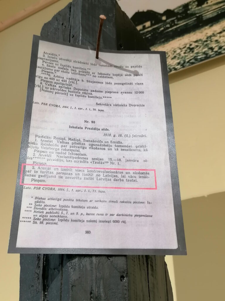 “1918. gads pirms Latvijas neatkarības  nodibināšanas bija ļoti sarežģīts. Dažādu ārvalstu politisku interešu bija tik daudz, ka mūsdienās ir sarežģīti izburties cauri politisko intrigu mudžeklim.  Mēs vēlējāmies vēsturisko informatīvo materiālu  pasniegt kinestētiskā veidā, ar sajūtām, tausti, lai skatītāji uztvertu notikumu emocionālo traģismu. Šis stāsts, kas atklājas caur niansēm, caur atmiņām, varētu būt saistošs arī skolu jaunatnei, lai vēsturi, kas varbūt  brīžiem šķiet neinteresanta un nesaprotama, viņi ieraudzītu caur konkrētu cilvēku likteni,” stāsta muzeja izglītojošā darba un darba ar apmeklētājiem vadītāja Vita Blate.