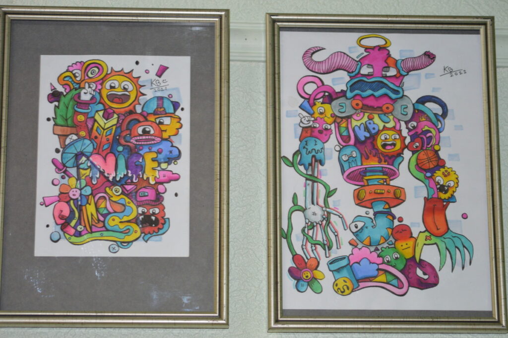 “Man patīk zīmēt kopā saliktas formas, lietas, ko redzu sev apkārt vai esmu redzējis internetā. Īpaši patīk zīmēt dažādus tēlus interesantās drēbēs (jakās, botēs, cepurēs, somās un tamlīdzīgi). Savus zīmējumus es uzskicēju ar parasto zīmuli, pēc tam pārvelku līnijas ar tušas pildspalvu un beigās izkrāsoju ar speciāliem marķieriem. Tagad man ir digitāls displejs, uz kura var zīmēt zīmēšanas aplikācijā. Man jau ir daži zīmējumi uz šī displeja, kas strādā kā monitors, bet tam klāt nāk speciāla pildspalva, kas strādā kā peles kursors. Šādi uzsāku zīmēt 2019. gadā un joprojām zīmēju savos brīvajos brīžos,” stāsta Kārlis.