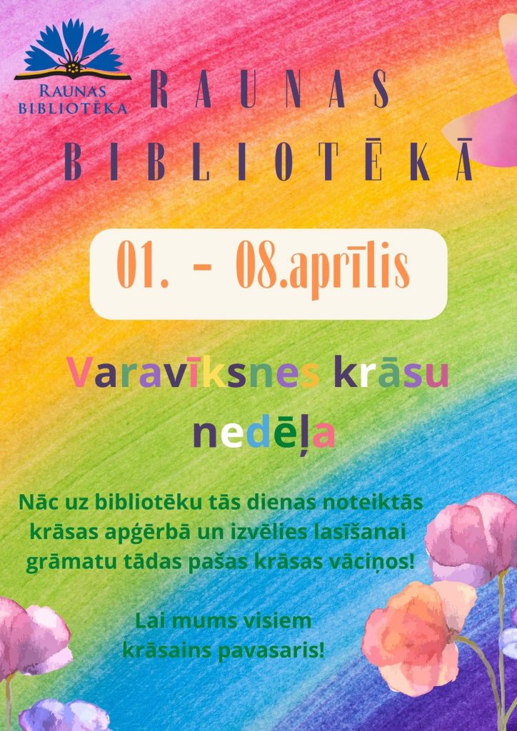 No 1. līdz 8. aprīlim Raunas bibliotēkā norisināsies Varavīksnes krāsu nedēļa.