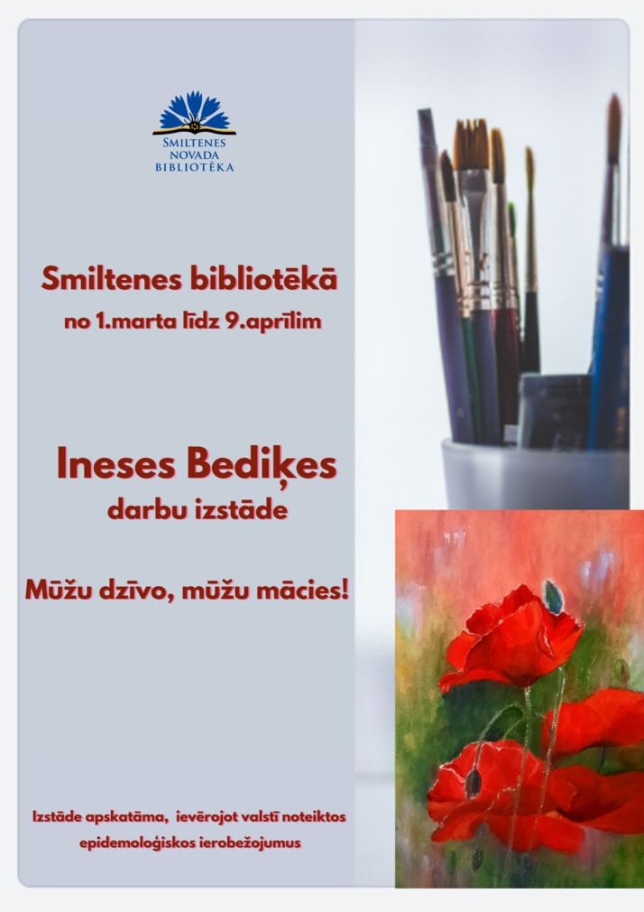 No 1.marta līdz 9.aprīlim Smiltenes bibliotēkā, Baznīcas laukumā 13, apskatāma Ineses Bediķes gleznu izstāde “Mūžu dzīvo, mūžu mācies!”.