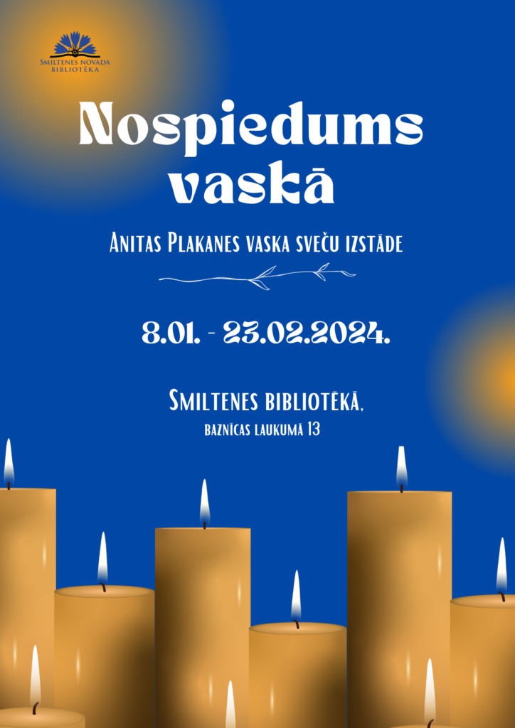 Smiltenes bibliotēkā Baznīcas laukumā 13 no 8.janvāra līdz 23. februārim baudāma vaska sveču izstāde “Nospiedums vaskā”, kurā aplūkojamas un sasmaržojamas Anitas Plakanes radītās vaska sveces.