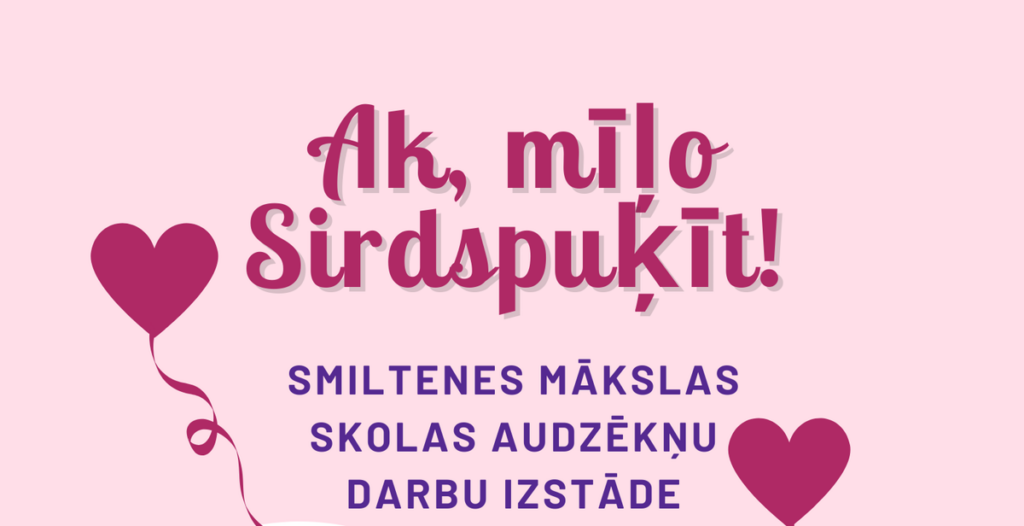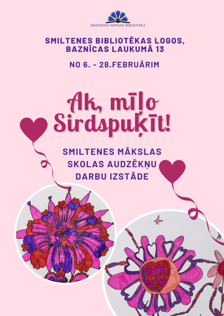 No 6. līdz 28.februārim Baznīcas laukumā 13 apskatāma Smiltenes Mākslas skolas audzēkņu darbu izstāde Valentīna dienas tematikā “Ak, mīļo Sirdspuķīt!”.