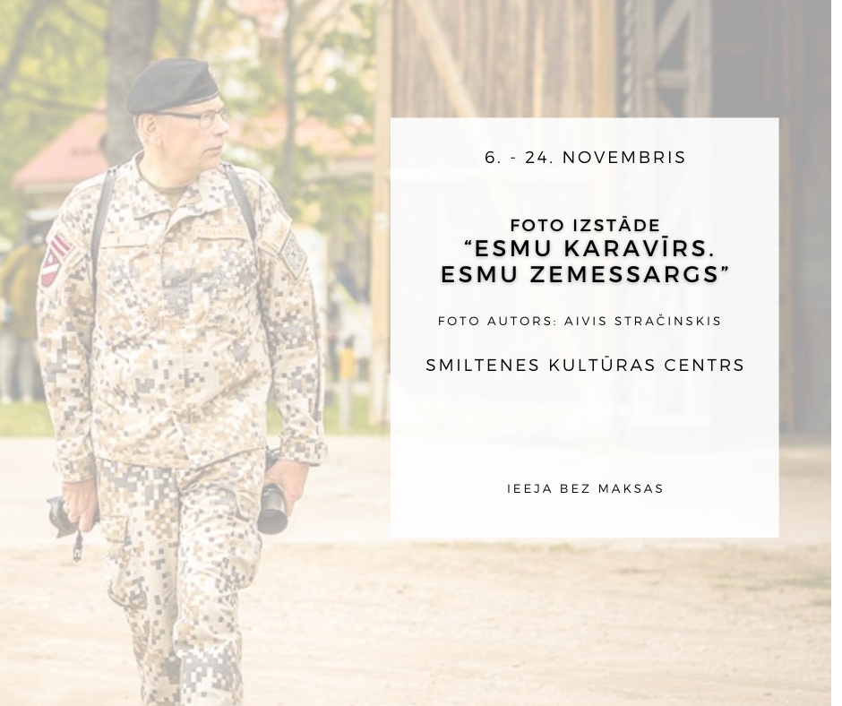 No 6. līdz 24. novembrim Zemessardzes 22. kaujas nodrošinājuma bataljons Smiltenes kultūras centrā aicina apmeklēt vienības veidoto foto izstādi “ESMU KARAVĪRS. ESMU ZEMESSARGS”.