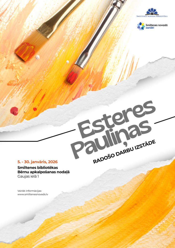 No 5. līdz 30. janvārim Smiltenes bibliotēkas Bērnu apkalpošanas nodaļā apskatāma Smiltenes Mākslas skolas 5. kursa audzēknes Esteres Pauliņas radošo darbu izstāde. Jaunās mākslinieces darbi aicina ielūkoties viņas radošajā pasaulē, kur sastopas iztēle, krāsa, forma un dizainisks domāšanas veids.