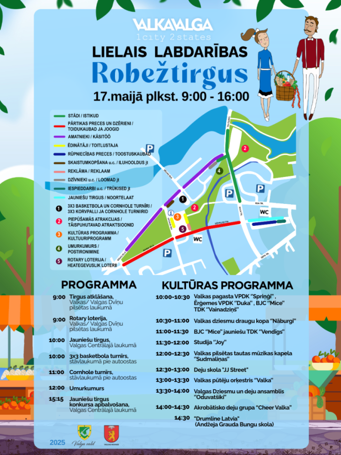 21. Lielā labdarības robežtirgus programma sestdien, 17. maijā, Valkā un Valgā: