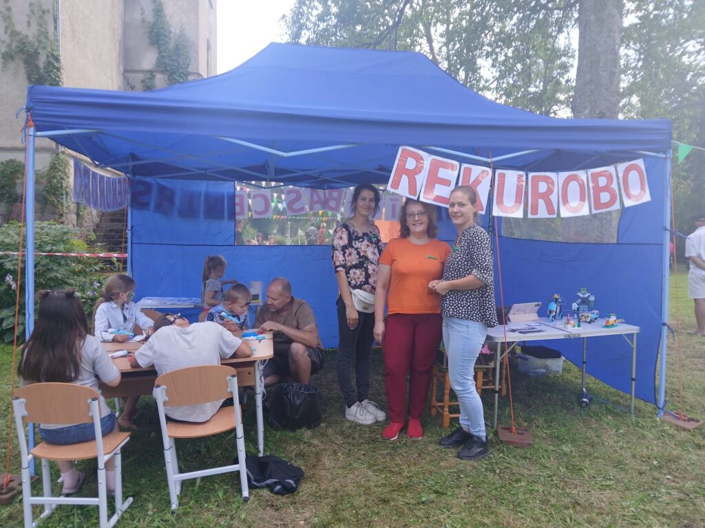 Bērni apguva jaunas prasmes radošajās darbnīcās, piemēram, izglītības centra “REKUROBO” vadītāja Una Reķe (vidū) un viņas palīdzes Diāna Bogdānova (no kreisās) un Rasa Reķe piedāvāja darboties ar 3D pildspalvām un robotiņiem.