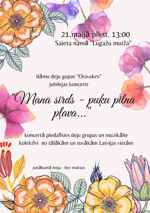 Sestdien, 21. maijā, pulksten 13 saieta namā “Lugažu muiža” notiks dāmu deju grupas “Oravakes” desmit gadu jubilejas koncerts.
