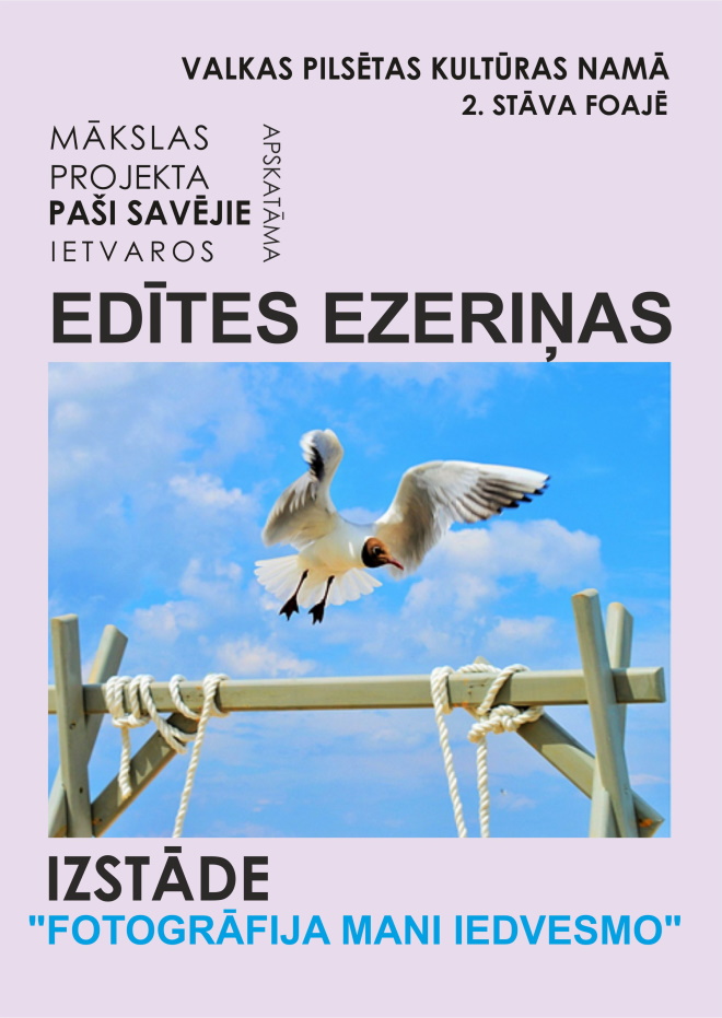 Valkas pilsētas kultūras nama 2.stāva foajē no 1. oktobra skatāma fotogrāfes Edītes Ezeriņas foto izstāde “Fotogrāfija mani iedvesmo.”