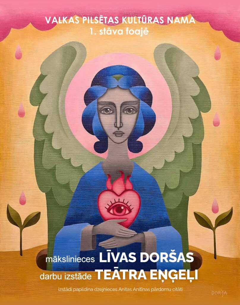 Valkas pilsētas kultūras nama (Em. Dārziņa ielā 8, Valka) 1. stāva foajē apskatāma mākslinieces Līvas Doršas un dzejnieces Anitas Anitīnas kopizstāde “Teātra eņģeļi”.
