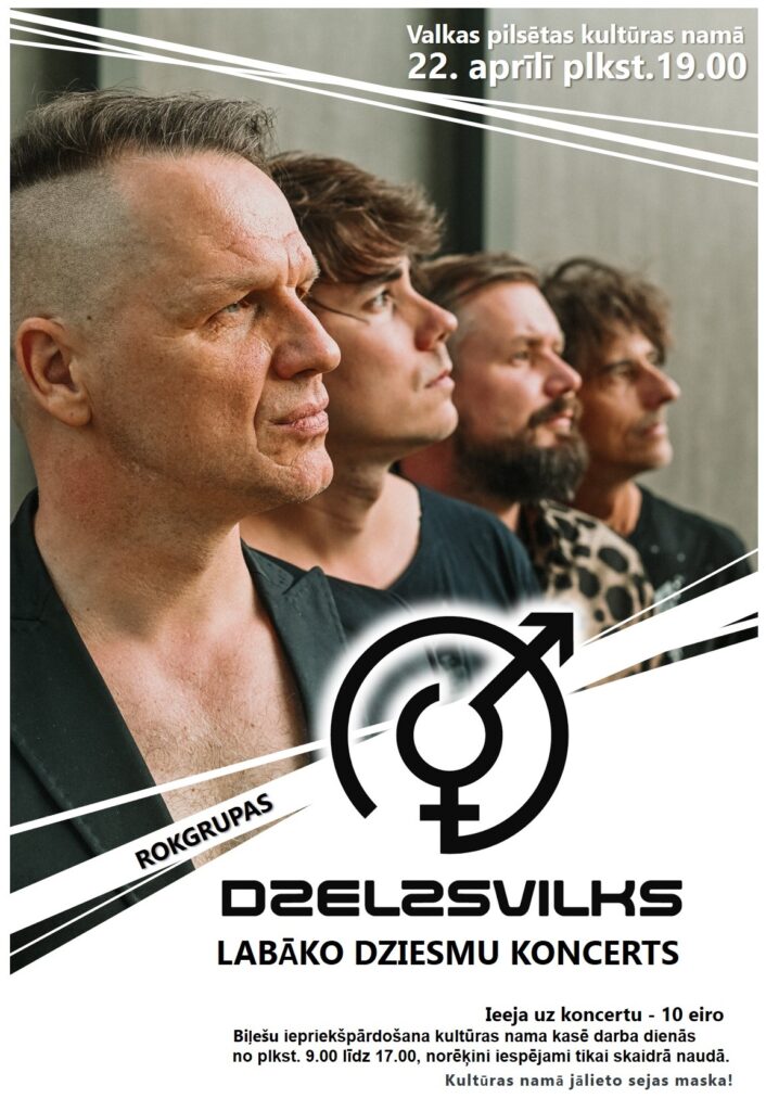 22. aprīlī plkst.19.00 Valkas pilsētas kultūras namā leģendārā latviešu rokgrupa “Dzelzs vilks” aicina uz grupas labāko dziesmu koncertu.