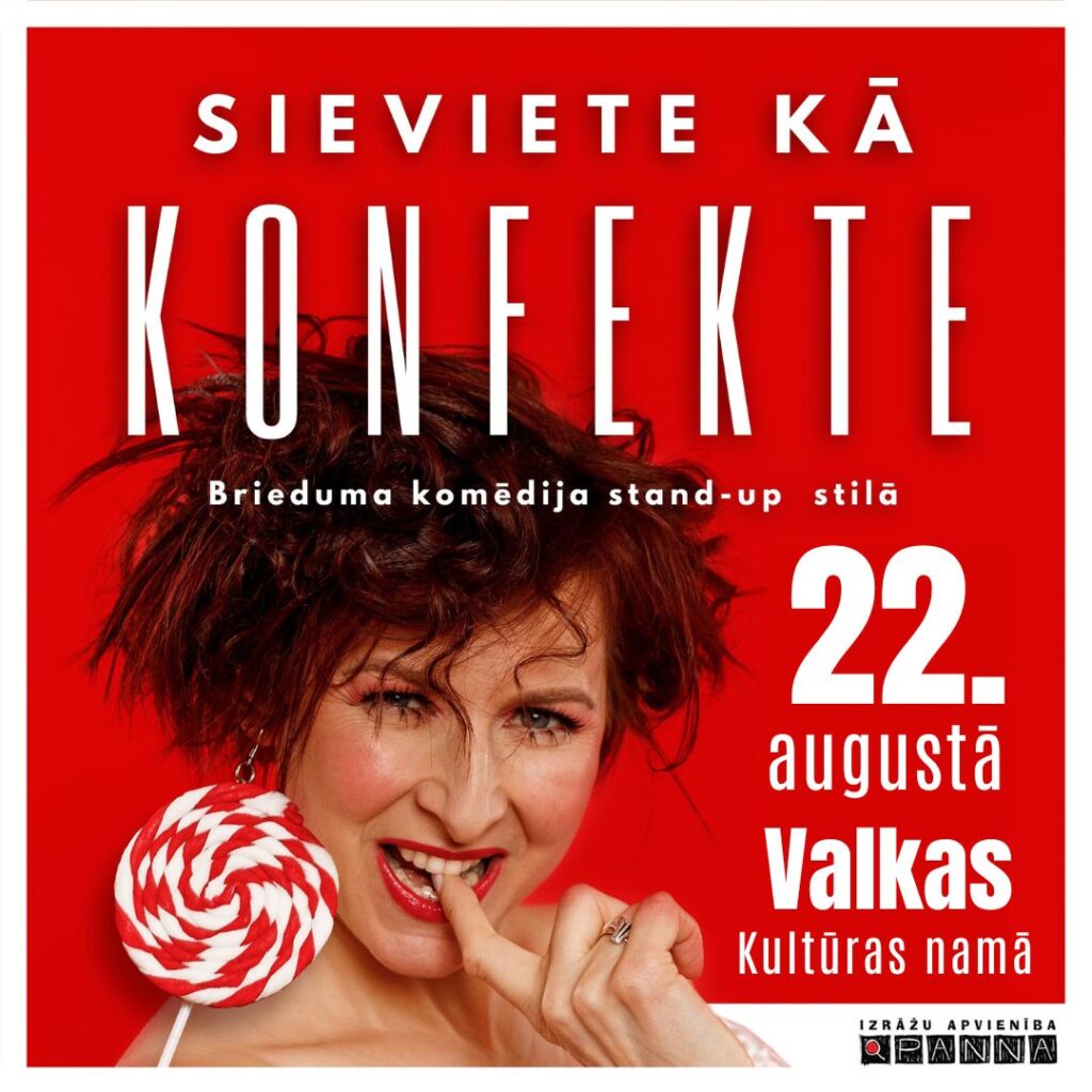 Valkas pilsētas kultūras namā 15. starptautiskā laikmetīgā teātra festivāla “Tālvils 2025” ietvaros 22. augustā plkst. 19.00 brieduma komēdija stand-up stilā “Sieviete kā konfekte”.