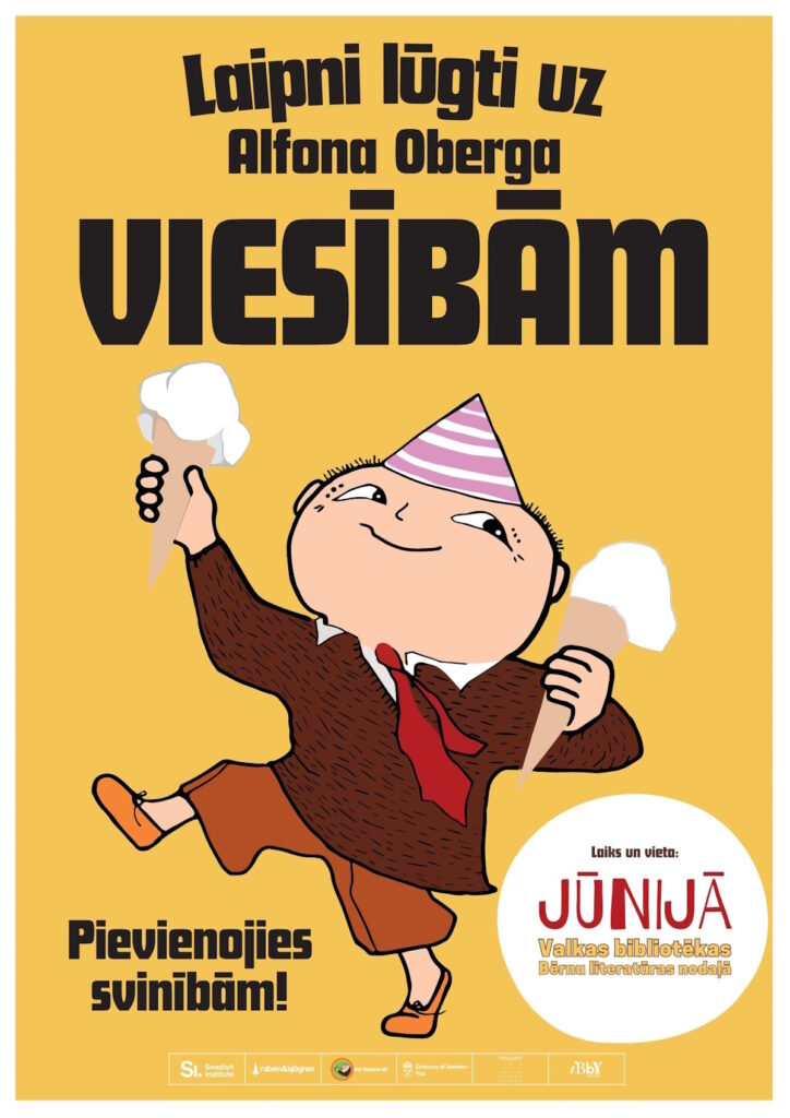 Valkas bibliotēkas Bērnu literatūras nodaļā visu jūniju apskatāma ceļojošā interaktīvā izstāde “Laipni lūgti uz Alfona Oberga viesībām”, kas tapusi, atzīmējot zviedru rakstnieces Gunillas Bergstremas slavenā grāmatu tēla Alfona piecdesmito gadadienu.
