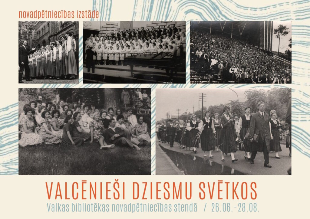 Tuvojoties Vispārējiem latviešu Dziesmu svētkiem no 26. jūnija Valkas bibliotēkas Pieaugušo literatūras nodaļā apskatāma novadpētniecības izstāde “Valcēnieši Dziesmu svētkos”. Ekspozīcijā – Valkas kora hronika, publikācijas, fotogrāfijas un dažādas piemiņas lietas – svētku programmiņas, nozīmītes u.c., kas ļaus ieskatīties valcēniešu gaitās agrāko laiku Dziesmu svētkos un noskaņoties lielākajiem kopā būšanas svētkiem.