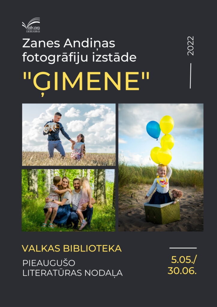Valkas bibliotēkas Pieaugušo literatūras nodaļā 5.maijā tiks atklāta valcēnietes Zanes Andiņas fotogrāfiju izstāde “Ģimene”. Ekspozīcijā fotoattēli no ģimeņu foto sesijām, kurus papildina mīļas lietas, kas raksturīgas bērniņa ienākšanas laikam pasaulē.