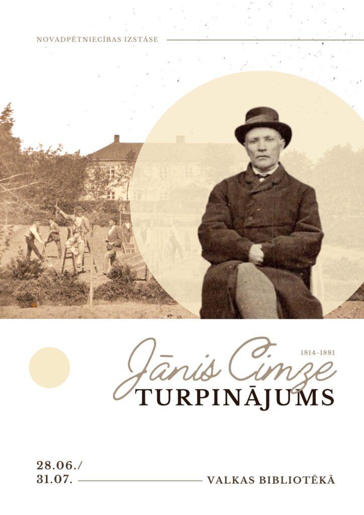 Atzīmējot skolotāju skolotāja Jāņa Cimzes 210. dzimšanas dienu, Valkas bibliotēkā līdz 31. jūlijam apskatāma izstāde “Jānis Cimze. Turpinājums”. Tajā vienuviet apkopotas liecības par izcilo skolmeistaru Jāni Cimzi, viņa vadīto Vidzemes skolotāju semināru, kā arī viņa darba turpinājumu – skolotājām, Jāņa Cimzes balvas laureātēm.