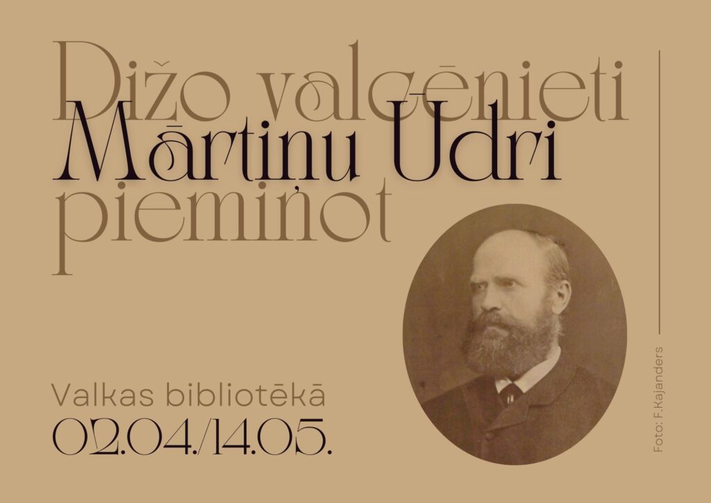 Atzīmējot Mārtiņa Ūdra – sava laika nozīmīgākā Valkas sabiedriskā darbinieka – 185. dzimšanas dienu, līdz 14. maijam Valkas bibliotēkā apskatāma novadpētniecības izstāde “Dižo valcēnieti Mārtiņu Ūdri pieminot”.