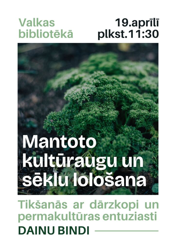 Ne mazāk svarīgs tikšanās mērķis ir mantoto un loloto sēklu maiņas punkta izveide Valkas bibliotēkā. Šī būtu vieta, kur dalīties vai iegūt īpaši Latvijas apstākļiem piemērotas sēklas, kas novāktas novada dārzos un, iespējams, saglabātas paaudžu paaudzēs. “Mēs ticam, ka no pašu lolotām sēklām izaudzētiem augiem un dārzeņiem līdzi nāk arī mīlestības pilni stāsti” uzsver idejas iniciatore Līga Rozīte.