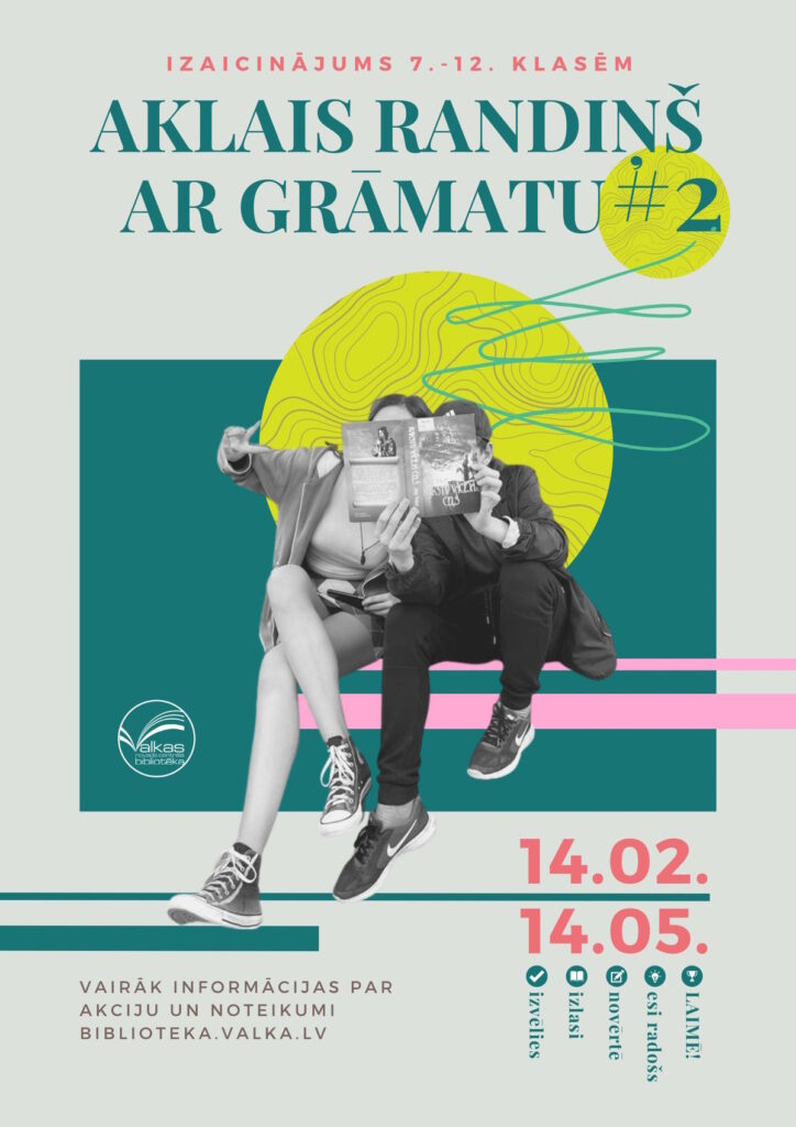 Arī šogad Valkas bibliotēka, laika periodā no 14. februāra līdz 14. maijam, izaicina 7. līdz 12. klases piedalīties grāmatu lasīšanas sacensībās “Aklais randiņš ar grāmatu #2” un iegūt iespēju vasaras sākumā doties kopīgā piedzīvojumā!