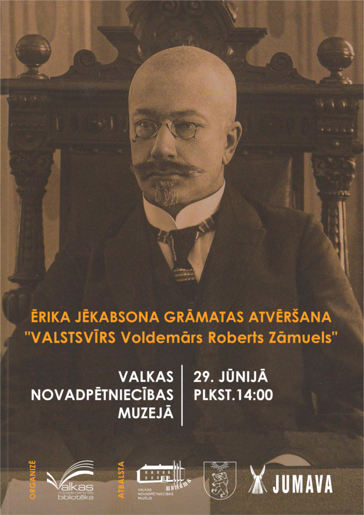 29. jūnijā plkst. 14:00 Valkas bibliotēka aicina ikvienu interesentu uz grāmatas “Valstsvīrs Voldemārs Roberts Zāmuels” atvēršanu Valkas novadpētniecības muzejā.
