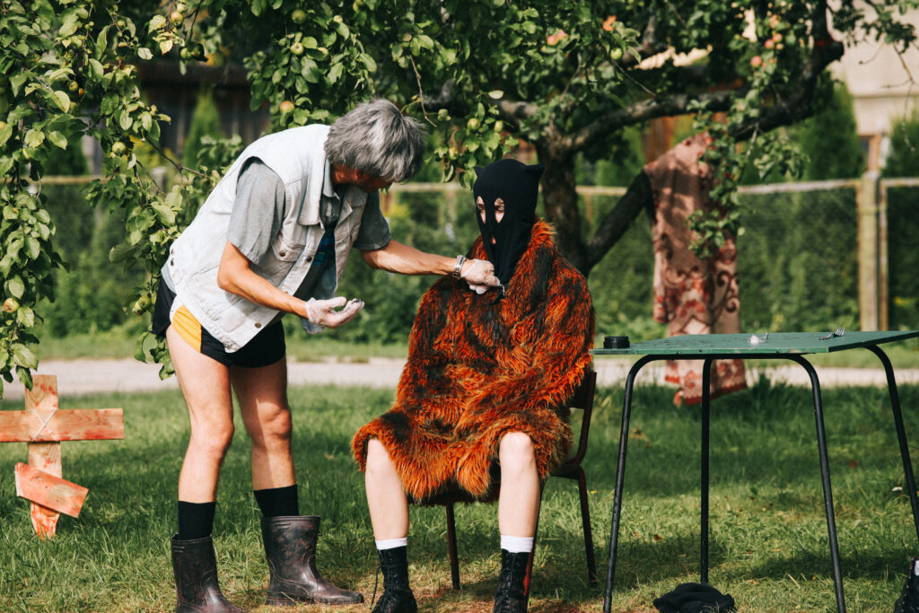Izrādes radošajā komandā arī scenogrāfe Pamela Butāne, kostīmu māksliniece Ieva Veita, gaismu mākslinieks Gatis Priednieks, kustību konsultants Aigars Apinis.