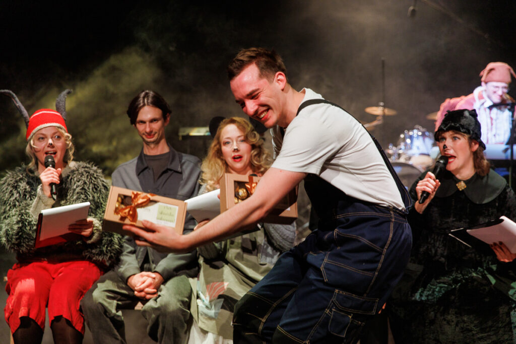 Pēc iestudējuma sekoja balvu pasniegšanas ceremonija, kurā tika sumināti gada mākslinieki un izrāde. Īpašs paldies teikts arī Valmieras teātra senioriem, kas ilgus gadus veltījuši darbam teātrī kā uz skatuves, tā aiz tās.