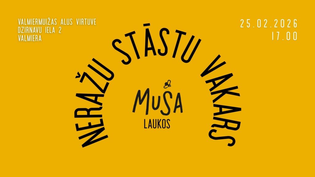 25. februārī no plkst. 17.00 līdz 20.00 Valmiermuižas alus virtuvē norisināsies neražu stāstu vakars “Muša laukos”, ko vadīs komiķe un podkāstu “Muša” un “Starp mums, meitenēm, runājot” autore Džemma Sudraba.