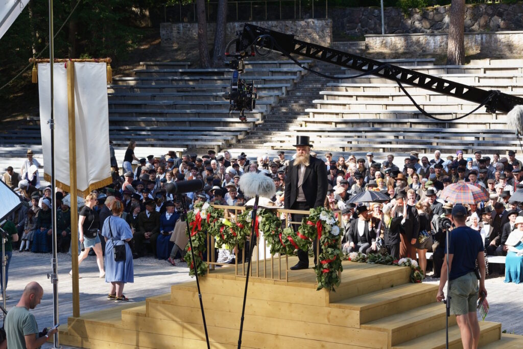 Kinopilsētiņā “Cinevilla” speciāli filmas vajadzībām uzbūvēta Rīgas Latviešu biedrības nama aula, kurā Dziesmusvētku atklāšanas koncertā pirmo reizi, neskatoties uz vietējo varu aizliegumu, publiski tika izpildīta Baumaņu Kārļa sacerētā “Dievs, svētī Latviju.  Interesentus, kuri vēlas piedalīties šī vēsturiskā notikuma kinematogrāfiskajā atveidojumā, aicinām līdz 30. aprīlim aizpildīt anketu.  Ja rodas grūtības to aizpildīt vai ir citi jautājumi par dalību, lūgums rakstīt uz e-pastu kastings@zemekasdzied.lv vai zvanīt uz telefona numuru +371 29323424.