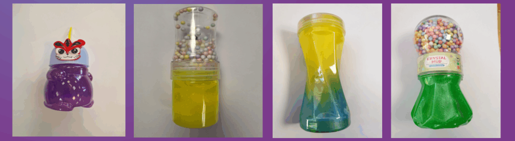 Slaims ir staipīga, krāsaina masa, bieži ar smaržu vai figūriņām iekšpusē. Tas izskatās pievilcīgs un var pat līdzināties ēdienam, kas bērniem var radīt vēlmi to ielikt mutē. Diemžēl dažās no šīm rotaļlietām konstatēja paaugstinātu bora daudzumu – tā ir viela, kas var kaitēt veselībai, ja to norij vai tā ilgstoši saskaras ar ādu.
