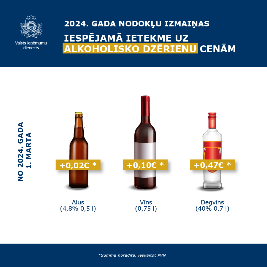 2024. gada 1. martā mainās arī akcīzes nodokļa likme bezalkoholiskajiem dzērieniem ar cukura saturu no 8 gramiem (ieskaitot) uz 100 mililitriem un enerģijas dzērieniem, kā rezultātā šo preču cena varētu pieaugt par 0,04 EUR par vienu litru dzēriena (ieskaitot PVN).