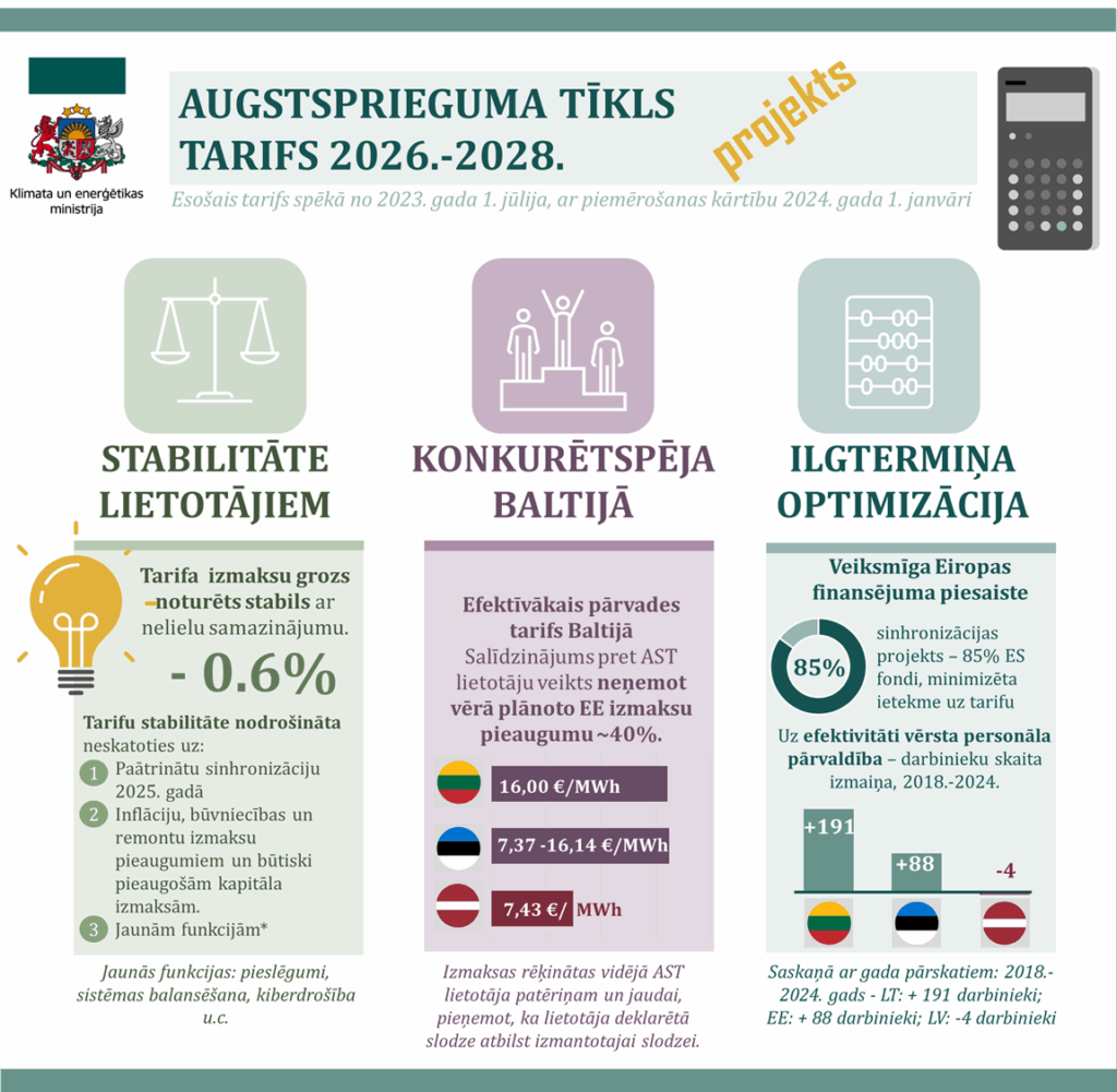 Tarifa stabilitāte panākta sarežģītos apstākļos, kur izmaksu spiedienu piedzīvo daudzi uzņēmumi, kas saistīti ar vispārēju inflāciju, jo īpaši ar kāpjošām būvniecības un remontu izmaksām. Svarīgi atcerēties, ka Latvijas pārvades sistēmas operatoram kopā ar igauņu un lietuviešu kolēģiem, Krievijas kara radīto risku dēļ, bija nepieciešams sagatavoties tīklu sinhronizācijai ar Eiropu gadu ātrāk. Vienlaikus līdz ar elektroenerģijas sistēmas attīstību un ģeopolitisko drošības risku dēļ, AST būtiski paplašinājušās veicamās funkcijas. Spēja šādos apstākļos saglabāt tarifu nemainīgu ir apliecinājums AST komandas profesionālai un stratēģiskai pieejai uzņēmuma pārvaldībā.