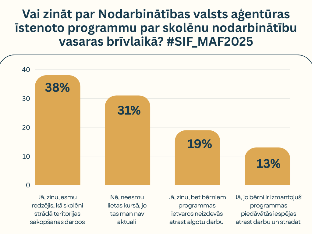 “Ziemeļlatvijas” publikācijā “Vasaras brīvlaikā strādāt gribētāju vairāk nekā pieejamo darba vietu skaits” rakstījām par skolas jauniešu darba iespējām vasaras brīvlaikā. Vairums cer un paļaujas uz Nodarbinātības valsts aģentūras (NVA) īstenotā pasākuma “Nodarbinātības pasākumi vasaras brīvlaikā personām, kuras iegūst izglītību vispārējās, speciālās vai profesionālās izglītības iestādēs” piedāvātajām iespējām.