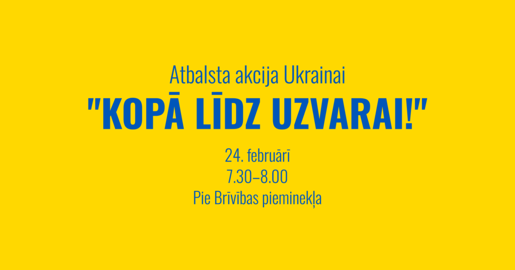 Ceturtajā gada dienā kopš Krievijas pilna mēroga iebrukuma Ukrainā, 24. februārī pie Brīvības pieminekļa notiks atbalsta akcija Ukrainai “Kopā līdz uzvarai!”. Atbalsta akcija sāksies saullēktā plkst. 7.30 un ilgs pusstundu.