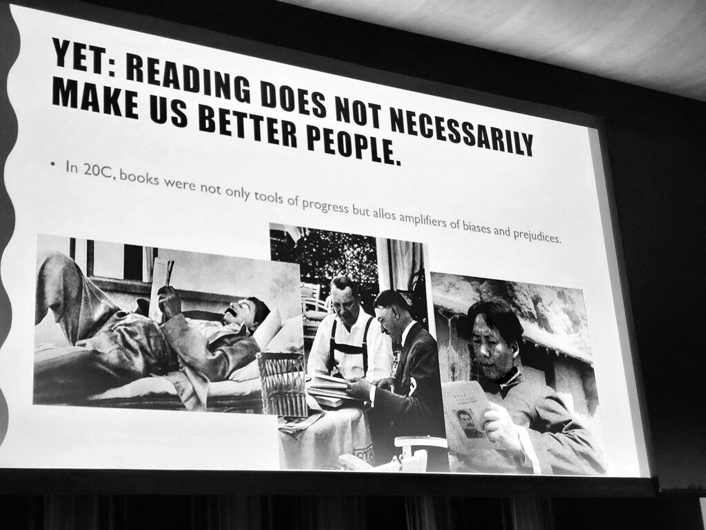 ĻUBĻANAS Universitātes profesors Miha Kovāčs pauž, ka grāmatu lasīšana trenē spēju izjust empātiju jeb līdzjūtību, taču automātiski mūs nepadara par labākiem cilvēkiem. Viņš to pamato ar faktu, ka arī Josifs Staļins, Ādolfs Hitlers un Mao Dzeduns bija grāmatmīļi, taču ne augsta līmeņa lasītāji.