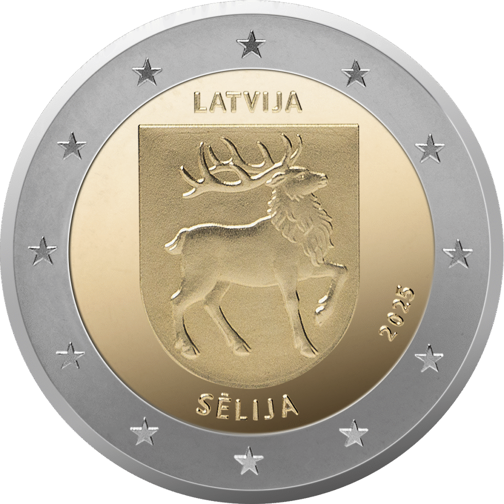 Monētas nacionālajā pusē ir attēlots Sēlijas ģerbonis. Monētā iekalts arī valsts nosaukums (LATVIJA) un izlaišanas gads (2025). Monēta kalta Lietuvas kaltuvē UAB Lietuvos monetų kalykla.