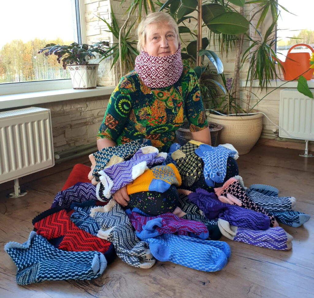Vienu zeķu pāri jau noadījusi arī Dagmāras kundze no Smiltenes novada. Viņa uzskata, ka šāda akcija ir atbalstāma, jo tā ir iespēja, kā šajā situācijā nepalikt vienaldzīgiem. “Adu savam priekam. Nāk ziema, nu garajos vakaros varu atkal ņemt rokās adatas un adīt. Vienu zeķu pāri noadīju, to atdošu pastniecei. Ja sanāks, tad tas nebūs vienīgais. Dzija jau iekrāta no pērnā gada. Ja kādam noderēs un kādu sasildīs manis adītas zeķes, tad es tikai priecāšos, jo nekā citādāk jau mēs, pensionāri, īsti nevaram iesaistīties atbalsta sniegšanā, nav rocības. Skatījos nupat televīzijā, tur jau kastu kastēm tās zeķes uz Rīgu savestas. Tas nozīmē, ka adītājas ir čaklas,” viņa saka.