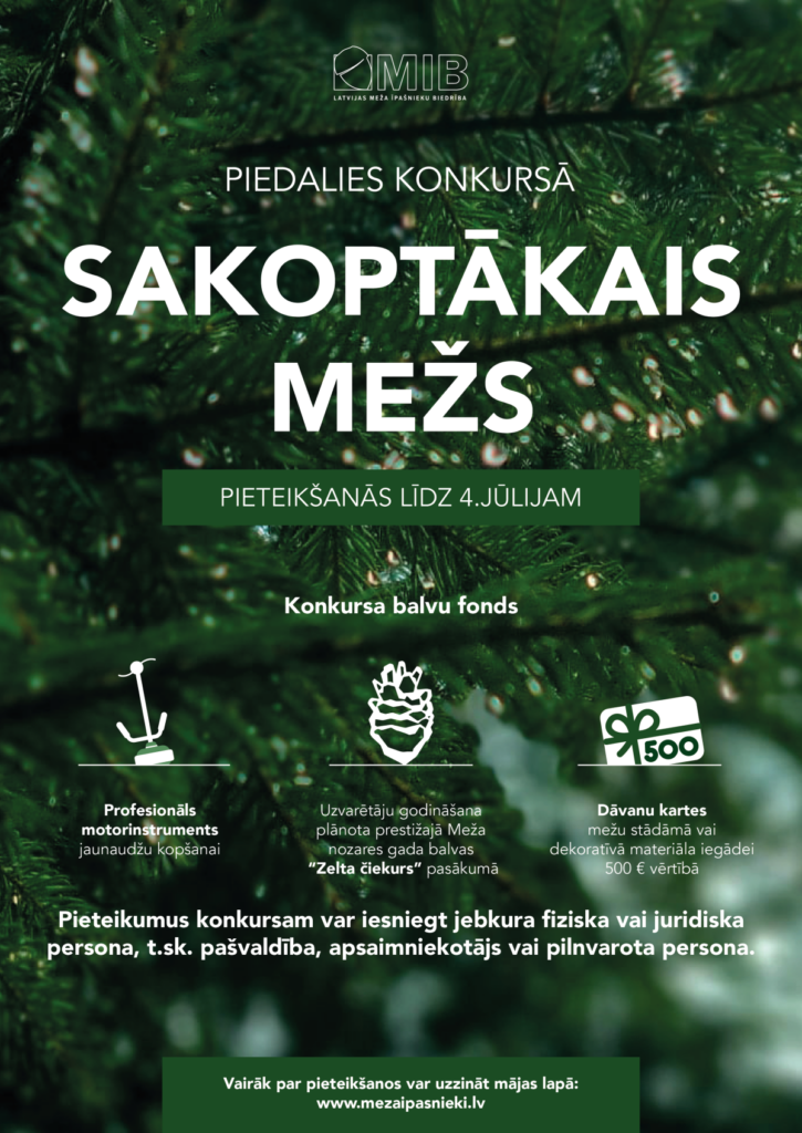 Konkursa nolikums un papildu informācija par pieteikšanos un vērtēšanas kritērijiem meklējami šeit: www.mezaipasnieki.lv. Konkursa organizētājs ir Latvijas Meža īpašnieku biedrība.