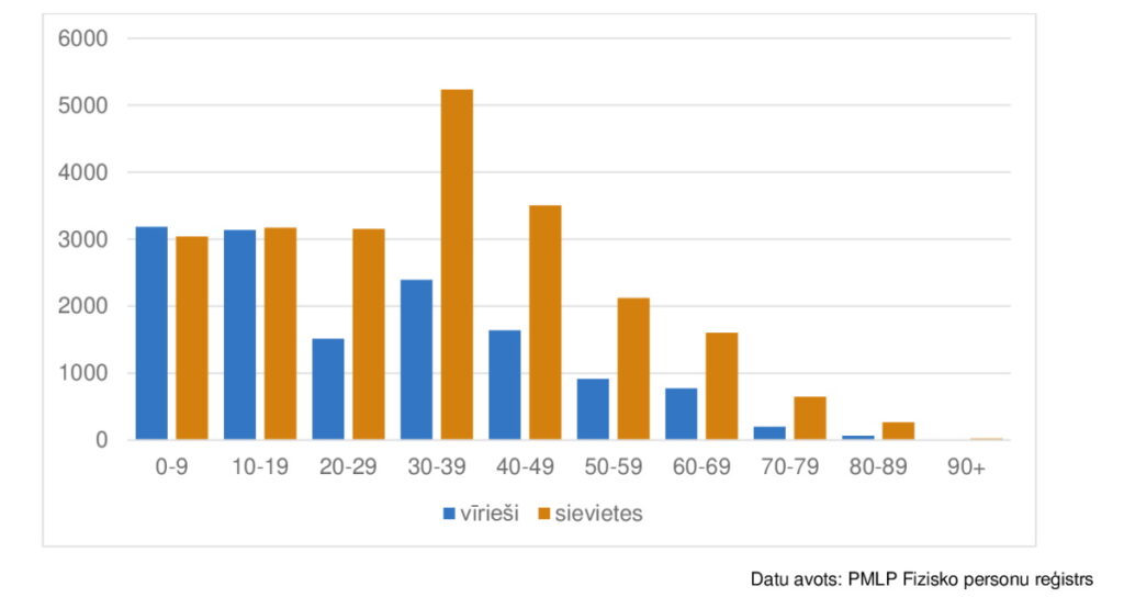 Lielākā daļa Ukrainas valstspiederīgo ir sievietes – 22,8 tūkstoši (62,2 %), bet 13,8 tūkstoši (37,8 %) – vīrieši.