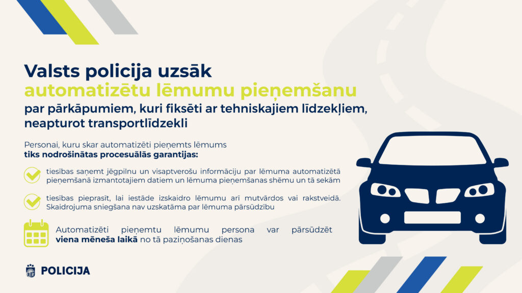 No rītdienas, 11. decembra, Valsts policija uzsāks automatizētu lēmumu pieņemšanu par pārkāpumiem, kuri fiksēti ar tehniskajiem līdzekļiem, neapturot transportlīdzekli, tādiem kā – pārvietojamie un stacionārie fotoradari.